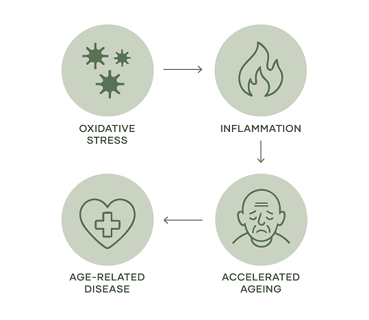 Ageing begins at the cellular level. Over time, oxidative stress, chronic inflammation, and nutrient depletion can damage cells, accelerate ageing, and increase susceptibility to disease. That’s why supporting healthy ageing means targeting the root causes: promoting cellular repair, protecting DNA, and restoring energy production.