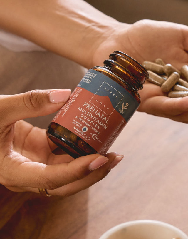 Terranova Prenatal Multivitamin is carefully formulated to reflect Terranova's commitment to synergistic nutrition. It goes beyond basic supplementation by incorporating the Magnifood Complex – a unique blend of fresh freeze-dried botanicals such as kale, blackberry, bilberry, pumpkin seed, stabilised rice bran, beetroot, and spinach. This complex is selected to work in harmony with the vitamins and minerals, enhancing their bioavailability, efficacy, and overall function within the body.